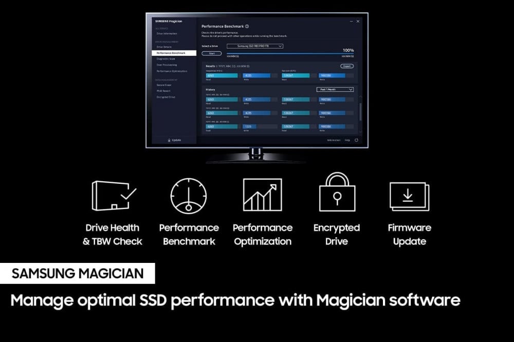 يعمل جهاز سامسونج 980 برو اس اس دي مع مشروب حراري مدمج على توزيع الحرارة للحفاظ على السرعة وكفاءة الطاقة والتحكم الحراري، مما يمنع توقف الحرارة الزائدة على جهاز بلاي ستيشن 5 وأجهزة الكمبيوتر الشخصية. مدعوم بجهاز تحكم داخلي مصمم لتنسيق مكونات ذاكرة الفلاش والواجهة من أجل سرعة عالية